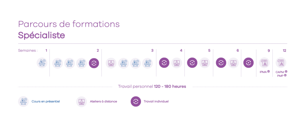 Ce parcours a été conçu pour des professionnel·le·s disposant d’une expérience et de connaissances solides en gestion de projet et qui souhaitent faire de la gestion de projet leur métier.
